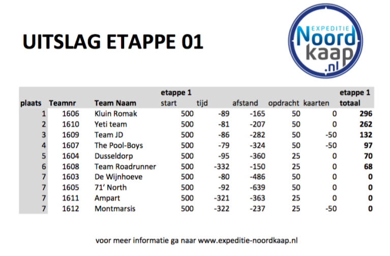 De eerste etappe Lichtenvoorde – Vierunmäki (Finland) zit er op, alle teams zijn veilig in het hotel aangekomen. Hieronder vind je de etappe uitslag Indien er vragen zijn over de tussenstand of het aantal behaalde punten kun je deze vraag…