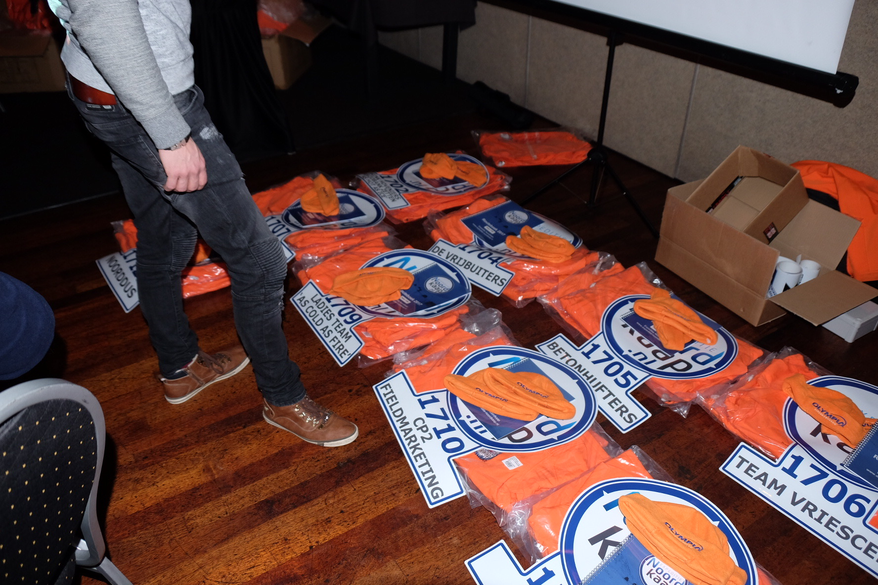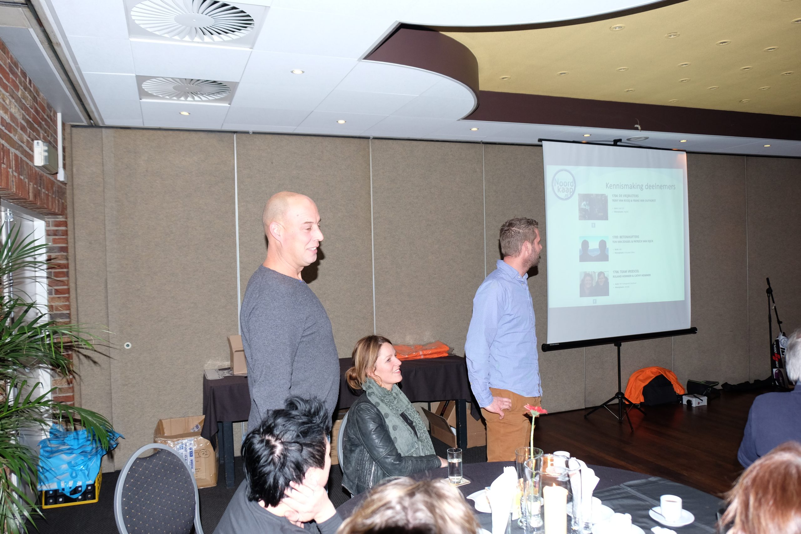 Afgelopen zaterdag 7 januari was er de informatieavond bij HRZ ’t Zwaantje voor deelnemende teams aan de Expeditie Noordkaap 2017. Tijdens deze avond kregen de deelnemers informatie en tips om de spannende rit heelhuids uit te rijden. Naast de informatie kregen de teams allen een knal oranje teamjas, de organisatiestickers voor op de auto en een pakket met o.a. een brandblusser en een onderkoelingsdeken van Dus-brandbeveiliging uitgereikt.