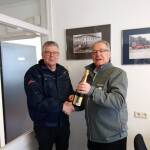 Hierbij enkele foto’s van het overhandigen van de fles champagne